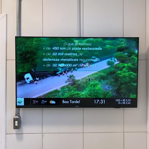 Com telas estrategicamente posicionadas, a Ecovias do Araguaia garante uma experiência informativa e envolvente para os colaboradores e passageiros, alinhando-se à missão da Ecovias de proporcionar um serviço de qualidade e segurança em suas vias.